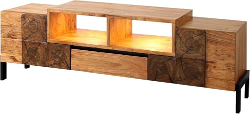 FurniFlex - لوح تلفزيون لوريت من خشب الأكاسيا الصلب من فورني فليكس، مقاس 180 سم × 55 سم × 40 سم