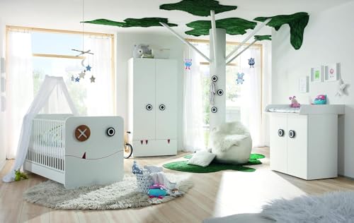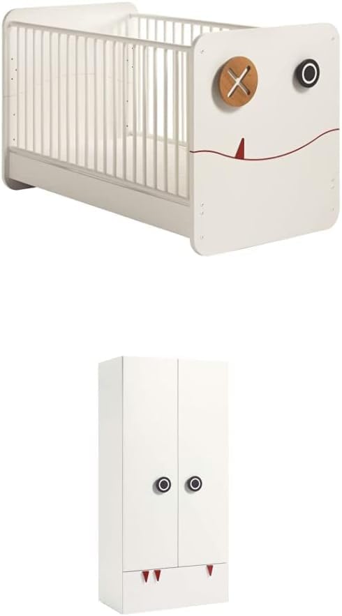 FurniFlex - طقم سرير مينيمو باطار مسطح مع خزانة ملابس وأدراج ببابين من فورني فليكس، لون أبيض ثلجي