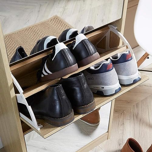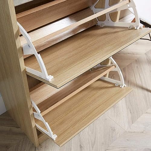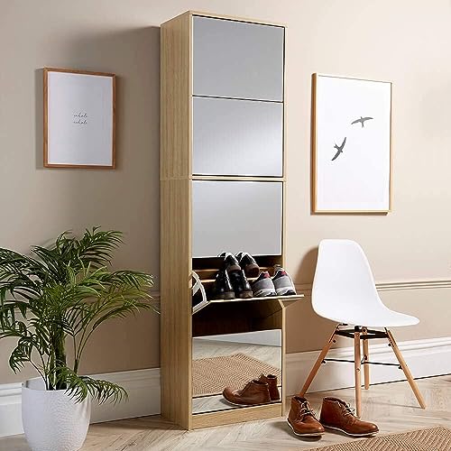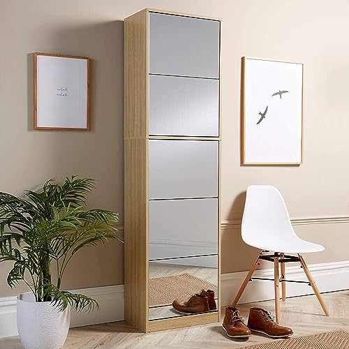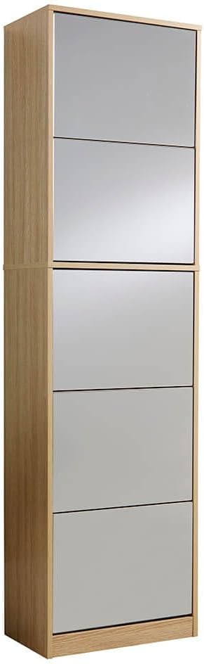 FurniFlex - حامل أحذية بمراية لتخزين الأحذية من فيرني فليكس، ارتفاع 1.8 م، خشب البلوط