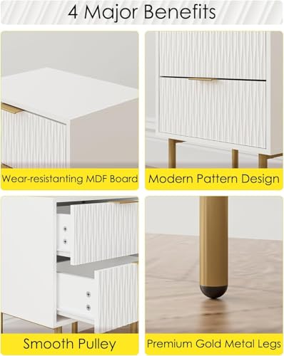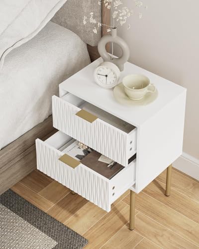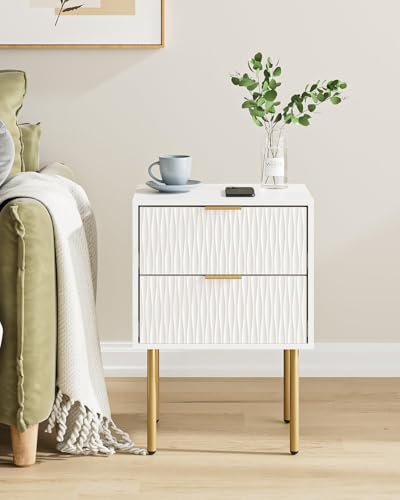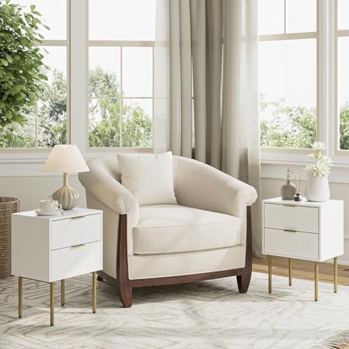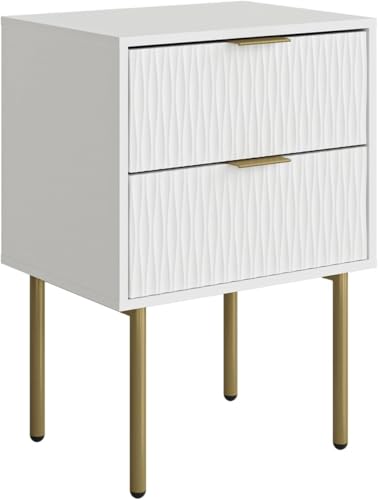 FurniFlex - طاولة جانبية حديثة باطار ذهبي مع درجين للتخزين، لون أبيض من فورني فليكس