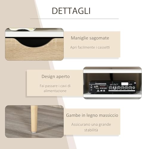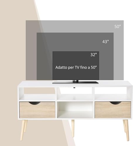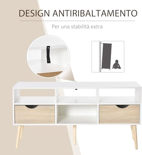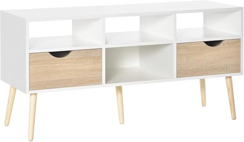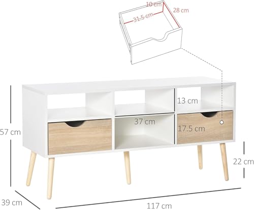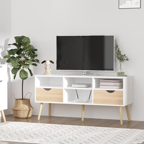 FurniFlex - خزانة تلفزيون عصرية مع أدراج ومساحات مفتوحة من فورني فليكس، مقاس 1.17 م × 39 سم × 57 سم، أبيض