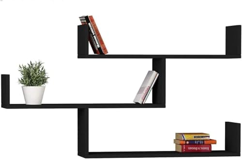 FurniFlex - رف حائط عصري من فيرني فلكس، لون أسود
