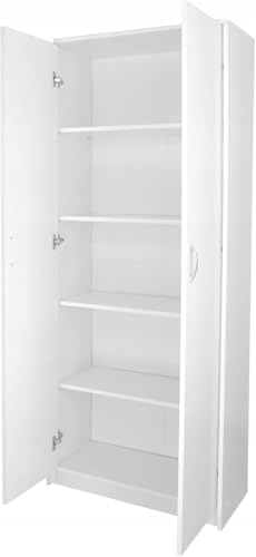 FurniFlex - بوفيه متعدد الأغراض بدرجين وبابين من فرني فليكس، عمق 35 سم × عرض 74 سم × ارتفاع 85 سم، لون أبيض