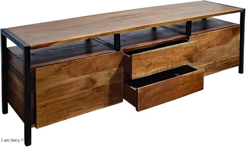FurniFlex - خزانة تلفزيون ناجار 2 من خشب الاكاسيا الصلب من فورني فليكس، مقاس 1.2 م × 30 سم × 40 سم، لون الجوز