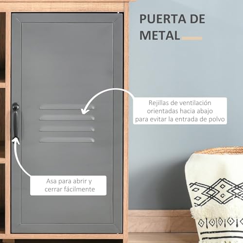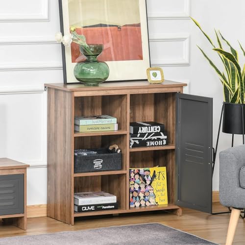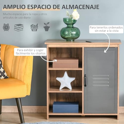 FurniFlex - خزانة جانبية مصنوعة من الخشب الطبيعي مع باب معدن من فورني فليكس، مقاس 80 سم × 35 سم × 82 سم، خشب طبيعي
