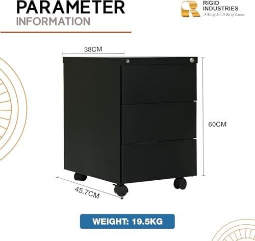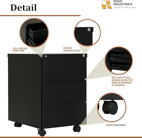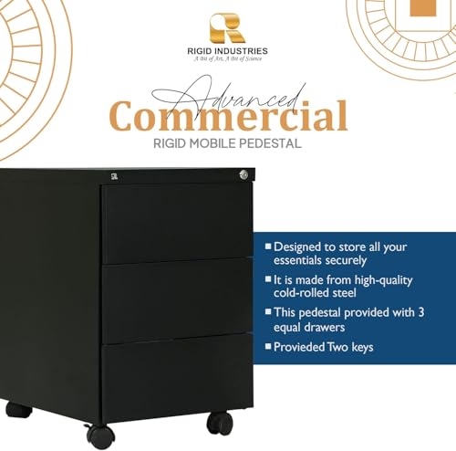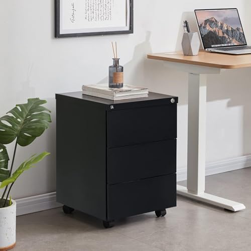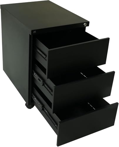 FurniFlex - وحدة تخزين متحركة من الستيل الصلب تحتوي على 3 أدراج من فيرني فليكس، لون أسود