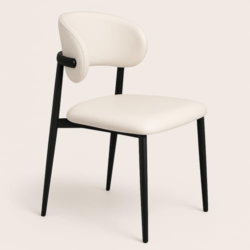 FurniFlex - كرسي طعام شاين من فورنيفليكس - جلد صناعي بيج وأرجل معدنية سوداء من الستيل الكربوني مع نسيج اوف وايت