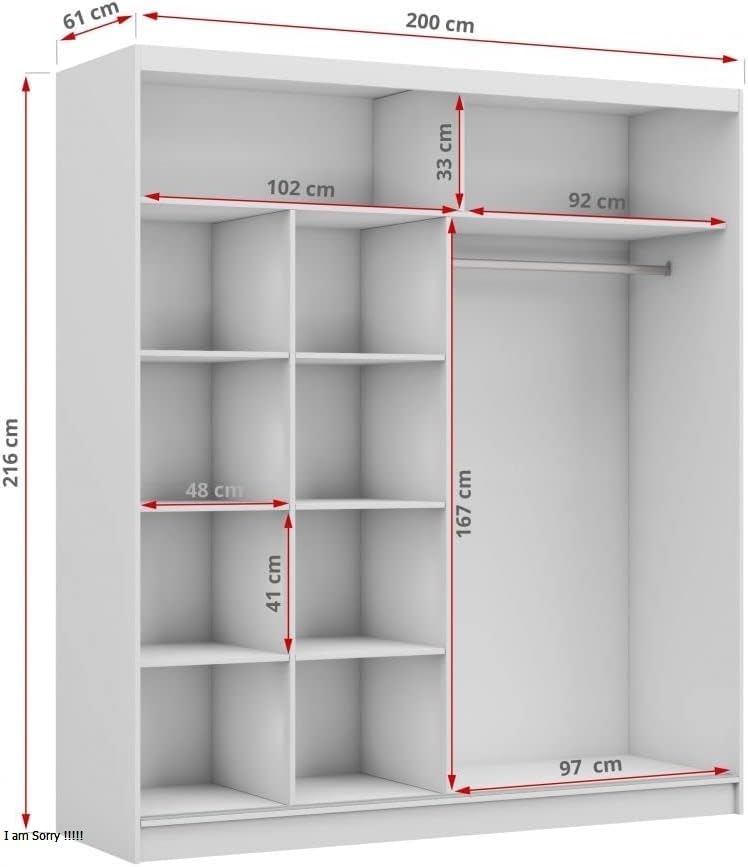 FurniFlex - دولاب ملابس بباب منزلق لغرفة النوم، من فورني فليكس مقاس 2 متر، لون أبيض