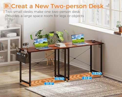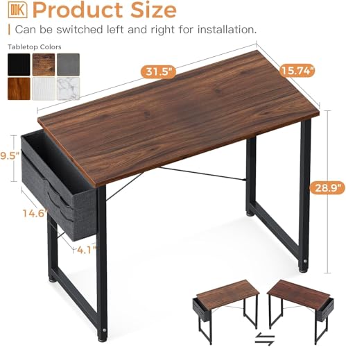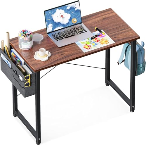 FurniFlex - طاولة مكتب كمبيوتر صغيرة مع خطاف لشنطة تخزين من فورني فليكس، مقاس 81 سم، بني غامق