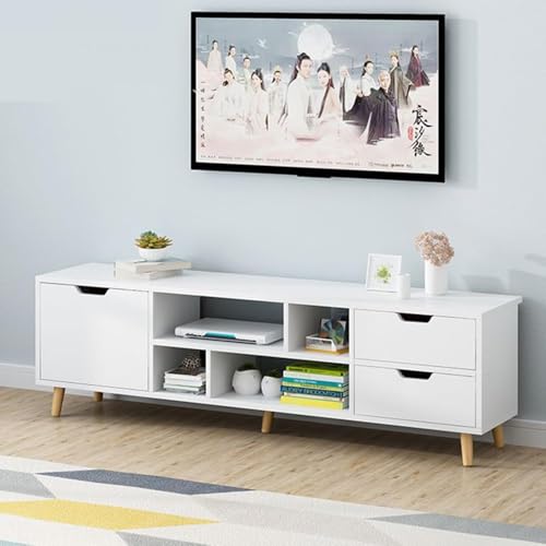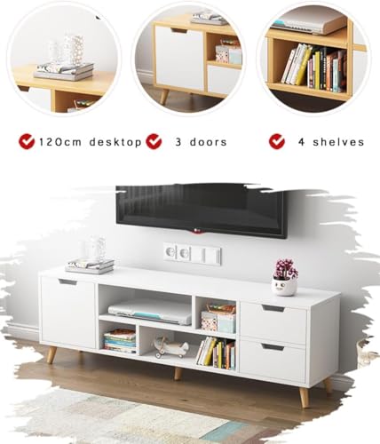 FurniFlex - وحدة تلفزيون بمساحة تخزين و3 أدراج من فورني فليكس، مقاس 1.2 م × 30 سم × 38 سم، أبيض