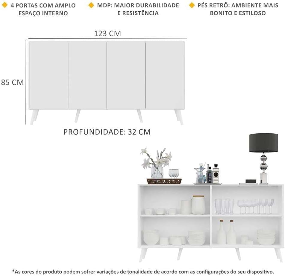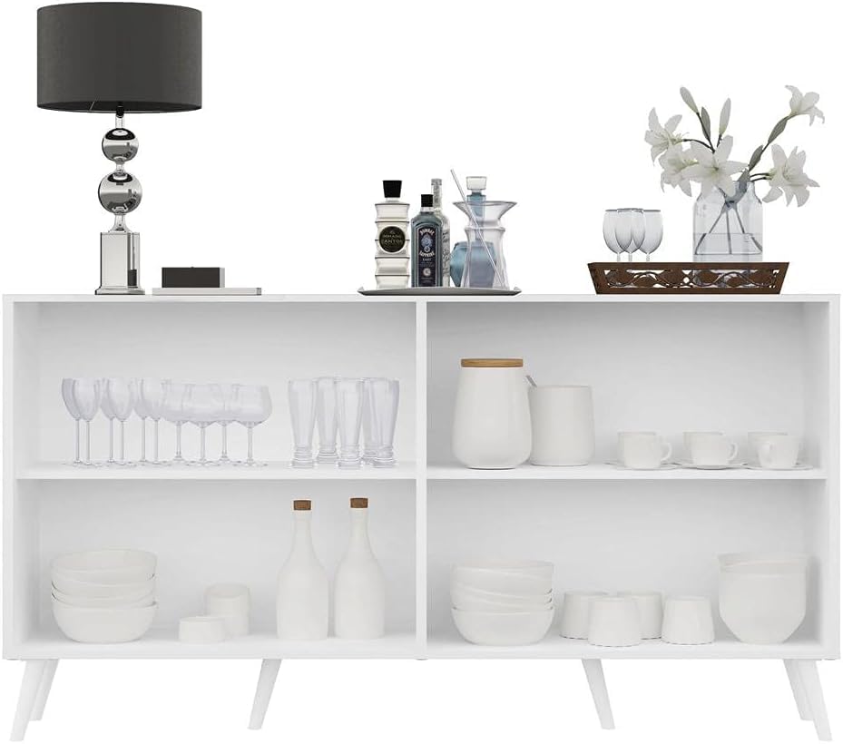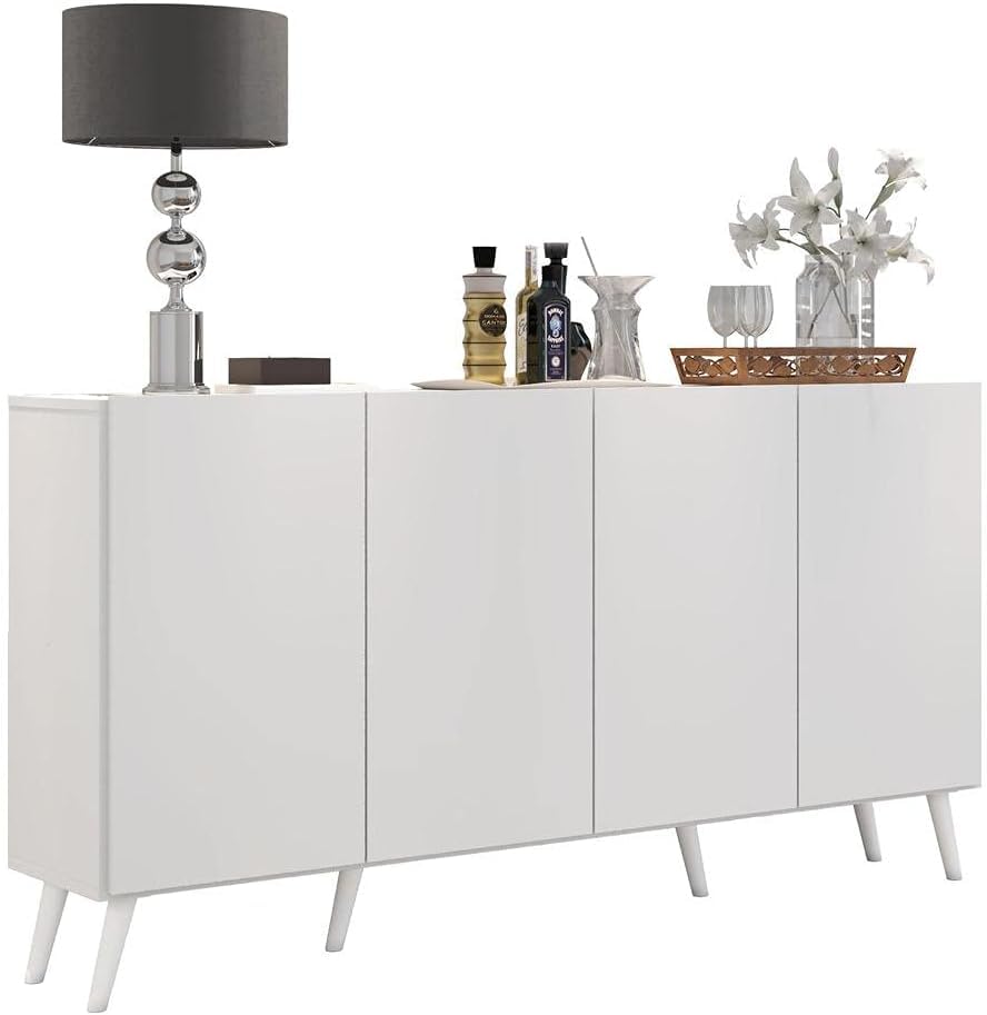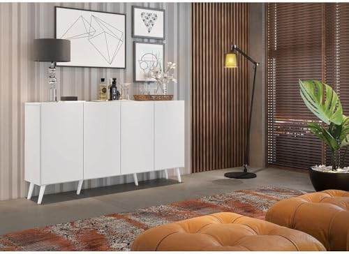 FurniFlex - دولاب بوفيه فينيس بتصميم ريترو بـ4 أبواب من فورني فليكس، أبيض
