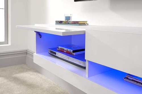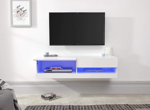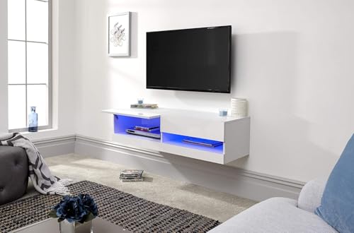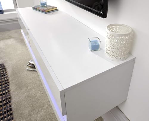 FurniFlex - وحدة تلفزيون لامعة تثبت على الحائط مع إضاءة ليد من فورني فليكس، مقاس 1.2 م، أبيض
