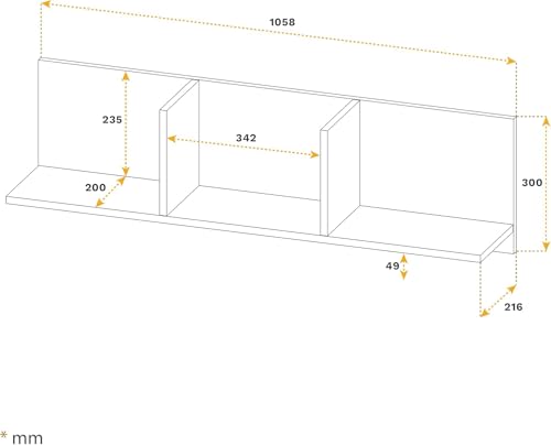 FurniFlex - رف جداري يو ال اف من فيرنيفليكس - مع خطافات معاطف وقضيب تعليق، بلون خشب السوناما