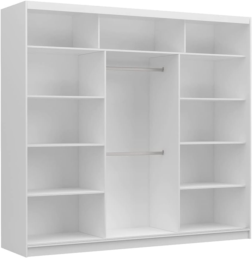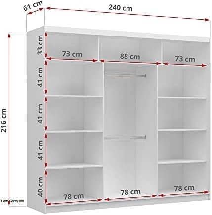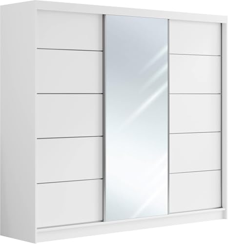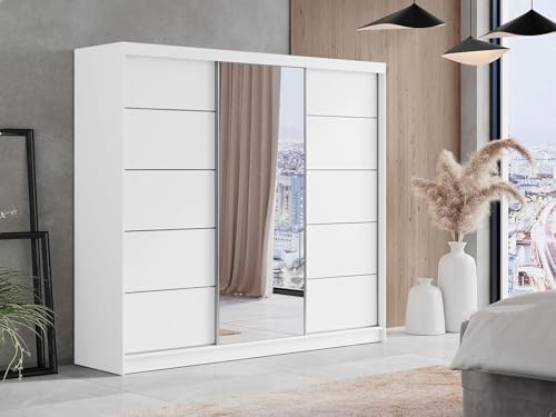 FurniFlex - خزانة ملابس مع مراة وباب منزلق لغرفة النوم من فورنيفليكس، مقاس 2.4 م، لون أبيض
