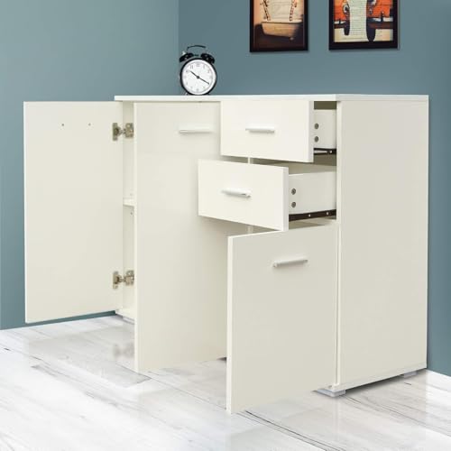 FurniFlex - دولاب حمام خشبي قائم بذاته مع 3 أدراج وخزانة واحدة من فورني فليكس