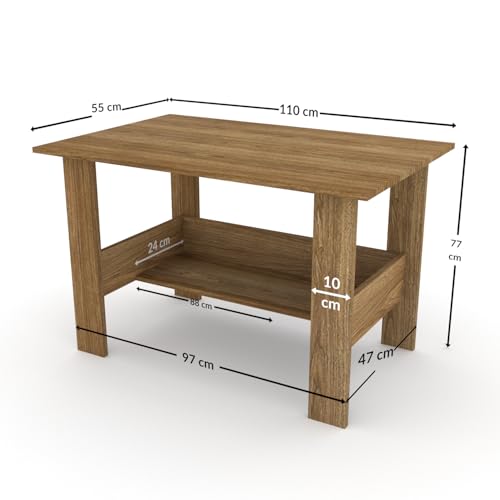 - الحجم: الطول (110 سم) العرض (55 سم) الارتفاع (77 سم)، يوفر مكتب المكتب مساحة كبيرة للعمل والكتابة والكمبيوتر وغيرها من الأنشطة المكتبية المنزلية. تتميز بتصميم موفر للمساحة مع رفين تخزين مفتوحين يمكن وضع بعض الكتب أو لوحات المفاتيح أو الماوس أو أي أشياء أخرى.