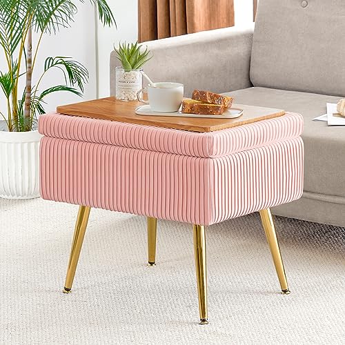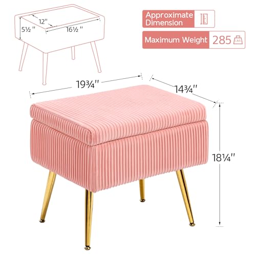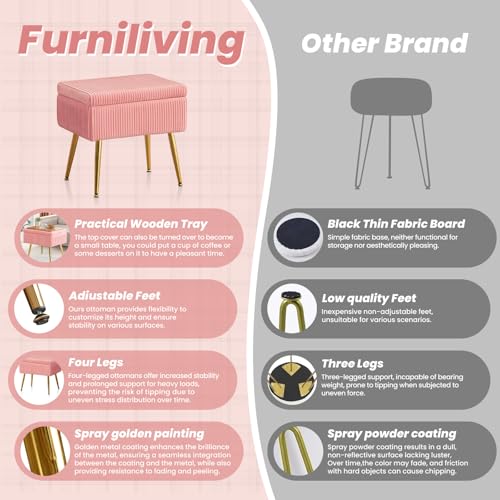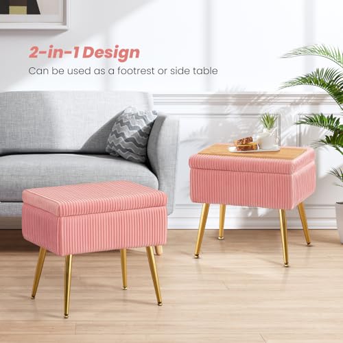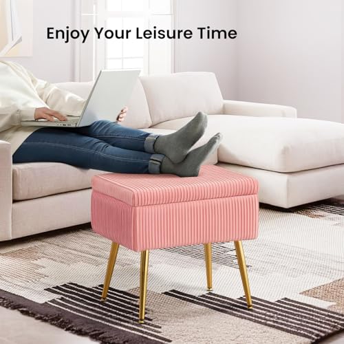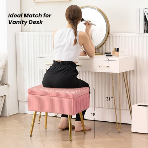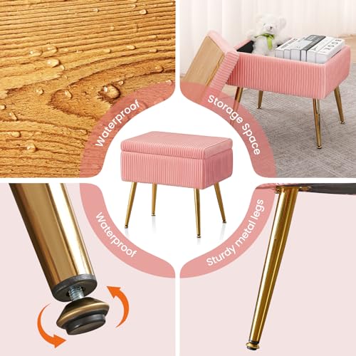 Furniliving - مقعد زينة منجد بقطيفة، مقعد مكياج ومسند قدمين بتصميم كسرات مع مساحة تخزين لغرفة النوم وغرفة المعيشة من فيرنيليفينج، وردي، عرض 50 سم × عمق 37 سم ×ارتفاع 47 سم