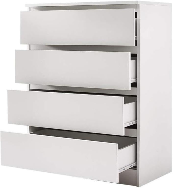 - وحدة ادراج مودرن ام دى اف - ارتفاع 100 سم - عرض 70 سم - عمق 42 سم ، تتكون من 4 ادراج ، مصنوعة من ال MDF عالي الجودة ، سُمك 16مم ، مع طبقة ملامين خارجية من اللون الأبيض المطفي. مع ميكنزم معدن (مجرة الدرج معدن 2 مرحلة) ، فنش عالي الجودة ، من فرنتشر ستور.