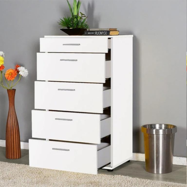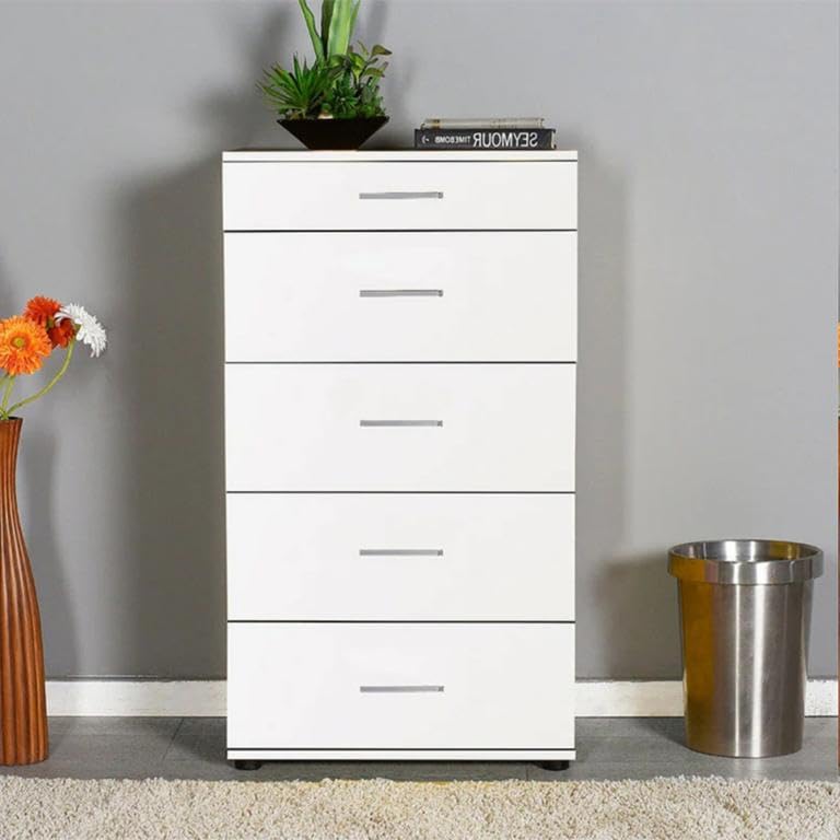 - وحدة ادراج مودرن ام دى اف - ارتفاع 107 سم - عرض 60 سم - عمق 42 سم ، تتكون من 5 ادراج ، مصنوعة من ال MDF عالي الجودة ، سُمك 16مم ، مع طبقة ملامين خارجية من اللون الأبيض المطفي. مع ميكنزم معدن (مجرة الدرج معدن 2 مرحلة) ، فنش عالي الجودة ، من فرنتشر ستور.