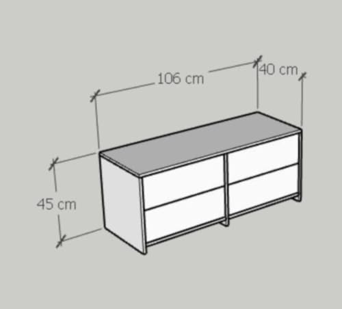 - وحدة ادراج مودرن ام دى اف - ارتفاع 45 سم - عرض 106 سم - عمق 40 سم ، تتكون من 4 ادراج ، مصنوعة من ال MDF عالي الجودة ، سُمك 16مم ، مع طبقة ملامين خارجية من اللون الأبيض المطفي. مع ميكنزم معدن (مجرة الدرج معدن 2 مرحلة) ، فنش عالي الجودة ، من فرنتشر ستور.