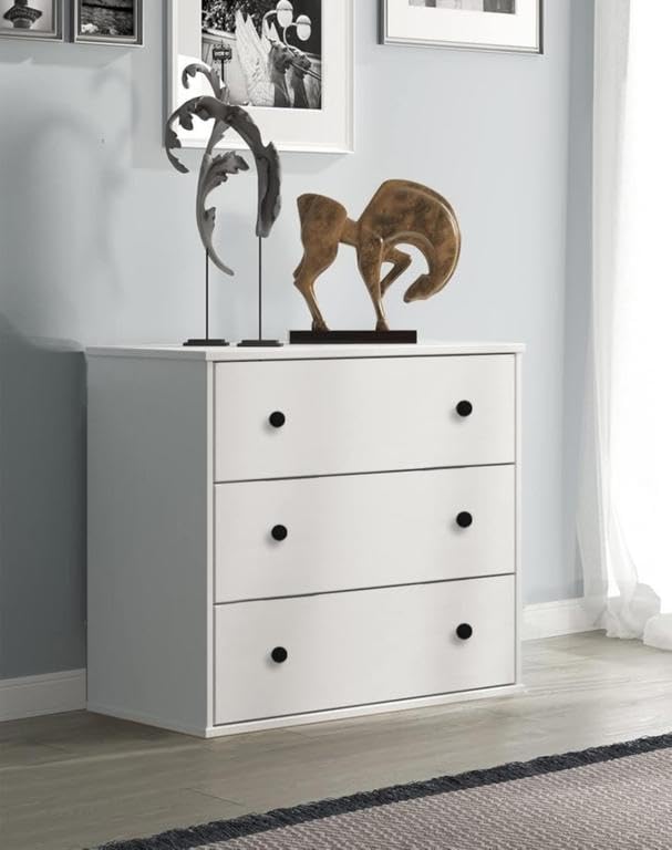 - وحدة ادراج مودرن ام دى اف - ارتفاع 65 سم - عرض 70 سم - عمق 40 سم ، تتكون من 3 ادراج ، مصنوعة من ال MDF عالي الجودة ، سُمك 16مم ، مع طبقة ملامين خارجية من اللون الأبيض المطفي. مع ميكنزم معدن (مجرة الدرج معدن 2 مرحلة) ، فنش عالي الجودة ، من فرنتشر ستور.