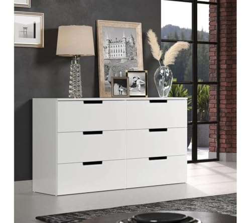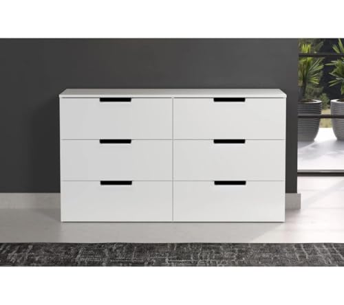 - وحدة ادراج مودرن ام دى اف - ارتفاع 70 سم - عرض 121 سم - عمق 42 سم ، تتكون من 6 ادراج ، مصنوعة من ال MDF عالي الجودة ، سُمك 16مم ، مع طبقة ملامين خارجية من اللون الأبيض المطفي. مع ميكنزم معدن (مجرة الدرج معدن 2 مرحلة) ، فنش عالي الجودة ، من فرنتشر ستور.