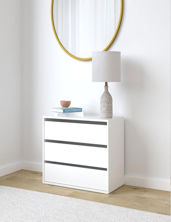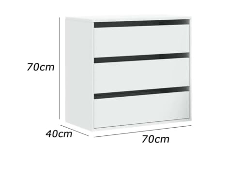 - وحدة ادراج مودرن ام دى اف - ارتفاع 70 سم - عرض 70 سم - عمق 40 سم ، تتكون من 3 ادراج ، مصنوعة من ال MDF عالي الجودة ، سُمك 16مم ، مع طبقة ملامين خارجية من اللون الأبيض المطفي. مع ميكنزم معدن (مجرة الدرج معدن 2 مرحلة) ، فنش عالي الجودة ، من فرنتشر ستور.
