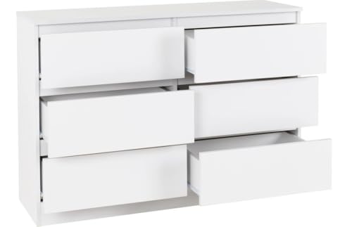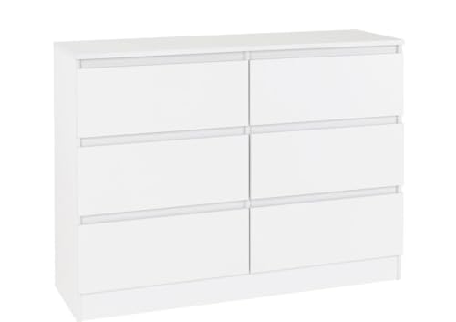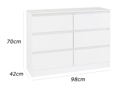 - وحدة ادراج مودرن ام دى اف - ارتفاع 70 سم - عرض 98 سم - عمق 42 سم ، تتكون من 6 ادراج ، مصنوعة من ال MDF عالي الجودة ، سُمك 16مم ، مع طبقة ملامين خارجية من اللون الأبيض المطفي. مع ميكنزم معدن (مجرة الدرج معدن 2 مرحلة) ، فنش عالي الجودة ، من فرنتشر ستور.