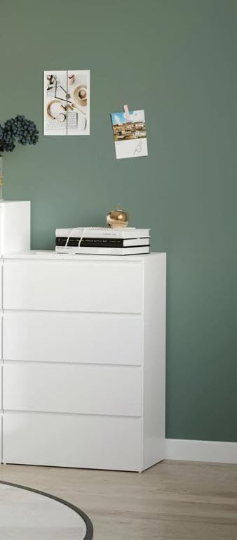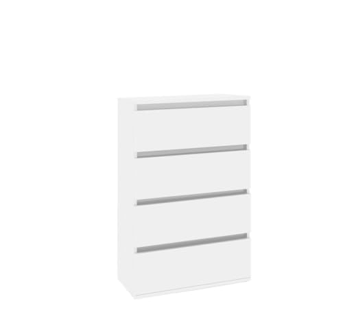 - وحدة ادراج مودرن ام دى اف - ارتفاع 88 سم - عرض 60 سم - عمق 42 سم ، تتكون من 4 ادراج ، مصنوعة من ال MDF عالي الجودة ، سُمك 16مم ، مع طبقة ملامين خارجية من اللون الأبيض المطفي. مع ميكنزم معدن (مجرة الدرج معدن 2 مرحلة) ، فنش عالي الجودة ، من فرنتشر ستور.