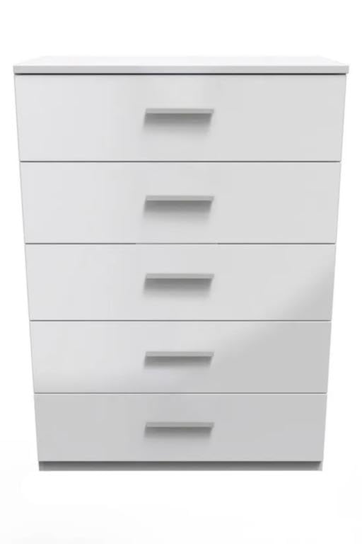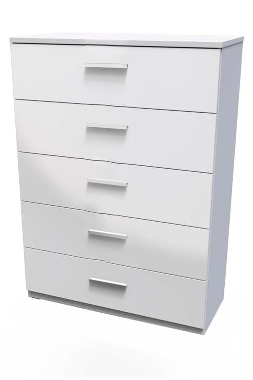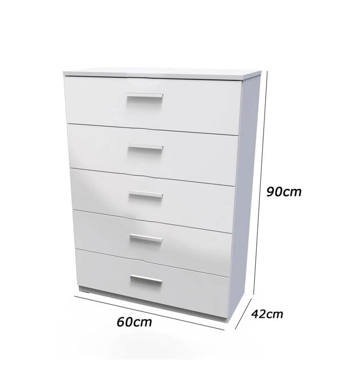 - وحدة ادراج مودرن ام دى اف - ارتفاع 90 سم - عرض 60 سم - عمق 42 سم ، تتكون من 5 ادراج ، مصنوعة من ال MDF عالي الجودة ، سُمك 16مم ، مع طبقة ملامين خارجية من اللون الأبيض المطفي. مع ميكنزم معدن (مجرة الدرج معدن 2 مرحلة) ، فنش عالي الجودة ، من فرنتشر ستور.