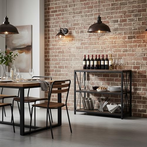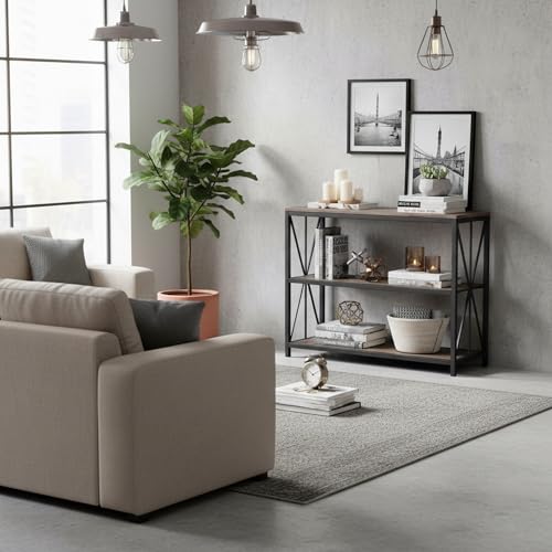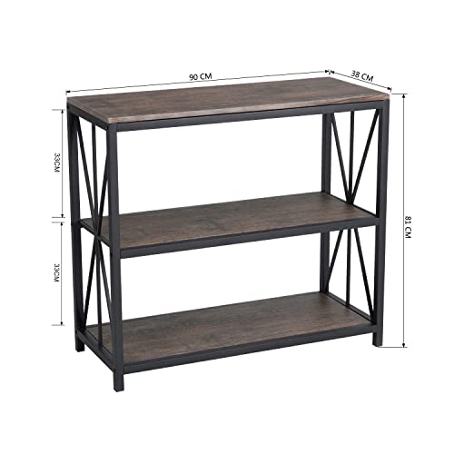 FurnitureR - فيرنتشرار ارفف صناعية مكونة من 3 ارفف من الخشب والمعدن، رفوف مفتوحة واسعة للتخزين في المنزل والمكتب، وحدات مجانية كلاسيكية، أسود