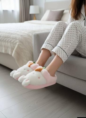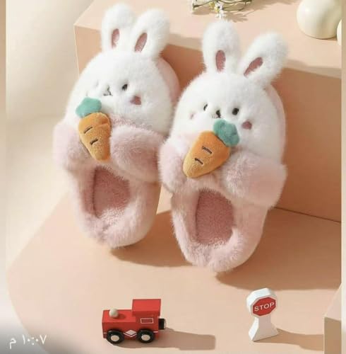 Generic - شبشب فروي للنساء - تصميم أرنب ناعم ودافئ، حذاء منزلي خفيف ومريح " نعل كوتشى قابل للغسيل المتكرر