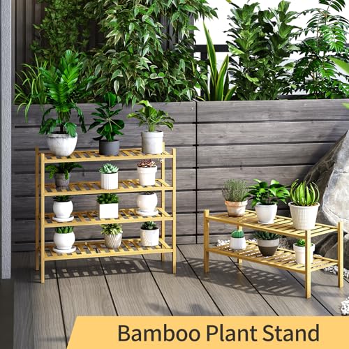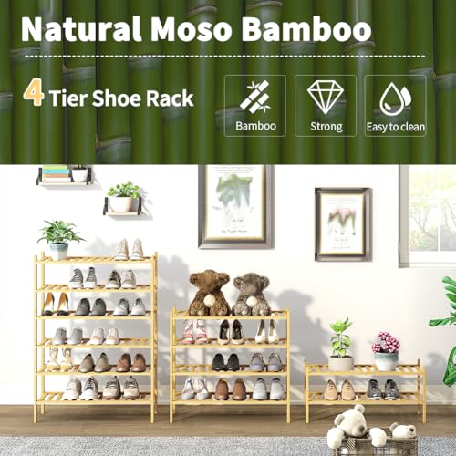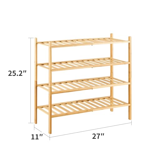 Furshus - وحدة أحذية من الخيزران من 4 طبقات للمدخل قابلة للتكديس بتصميم شديد التحمل ومتعدد الوظائف مع رفوف أحذية قائمة بذاتها لغرفة النوم والرواق من فرشوس