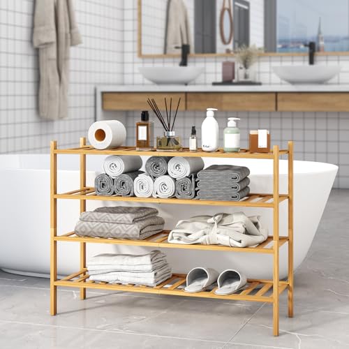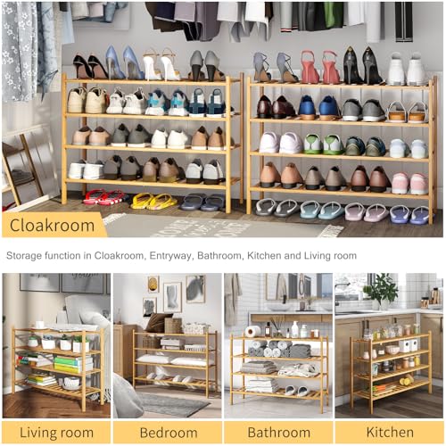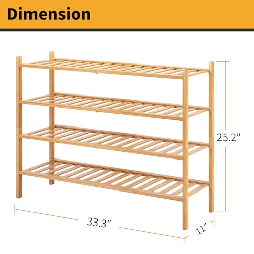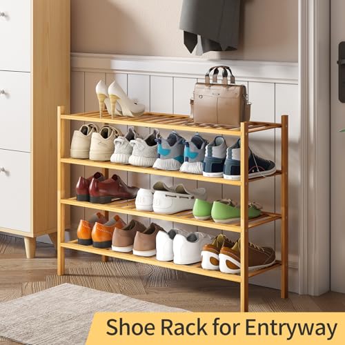 Furshus - رف أحذية طويل من فرشوس، منظم تخزين أحذية قابل للتكديس من الخيزران مكون من 4 طبقات، حامل أحذية للخزانة والمدخل والممر، طبيعي