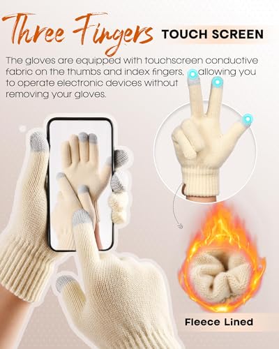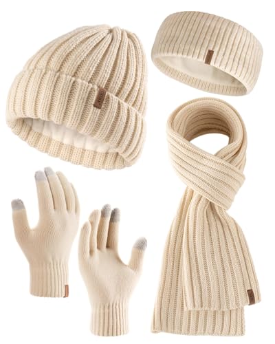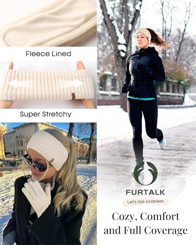 FURTALK - فرتوك قبعة صغيرة دافئة شتوية محبوكة وقفازات ووشاح، مجموعة قفازات ووشاح مبطنة بالصوف الناعم بطبقة مزدوجة، قبعة جمجمة هدايا للنساء