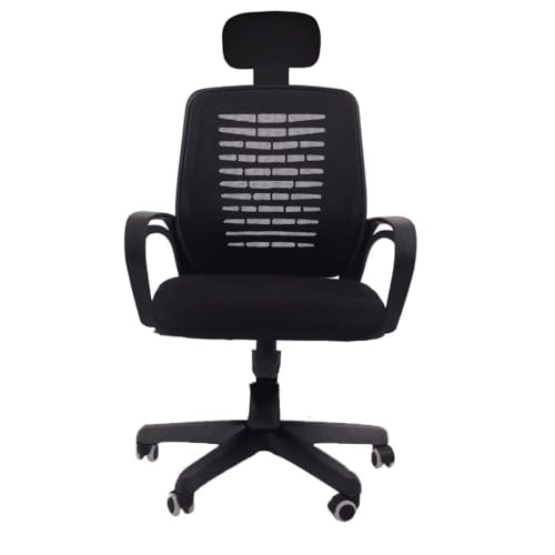 furvive furniture - كرسي من فيرفايف فيرنتشر للعمل المكتبي والعمل على الكمبيوتر، مع دعم قطني وشبك تنفس ووسادة عالية الكثافة وهيدرست، مصنوع من البلاستيك، باللون الأسود