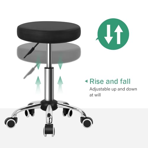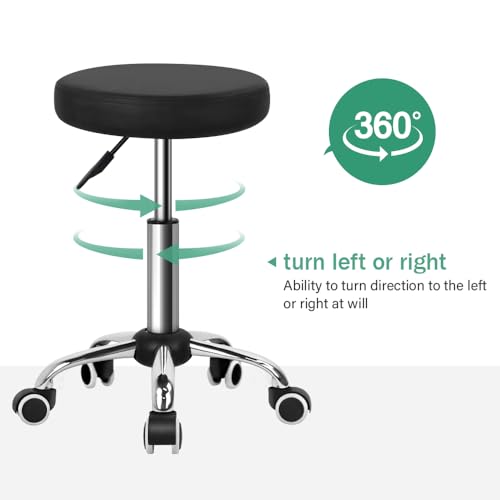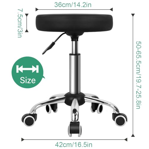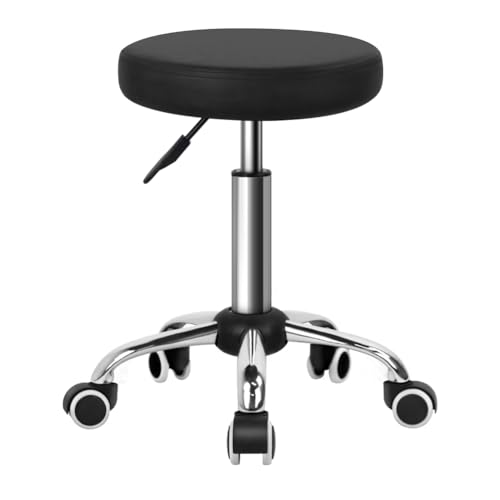 FURWOO - كرسي صالون صغير قابل للتعديل بعجلات للصالون والسبا والتدليك والمنزل والمكتب من فروو، لون أسود، مقاس M