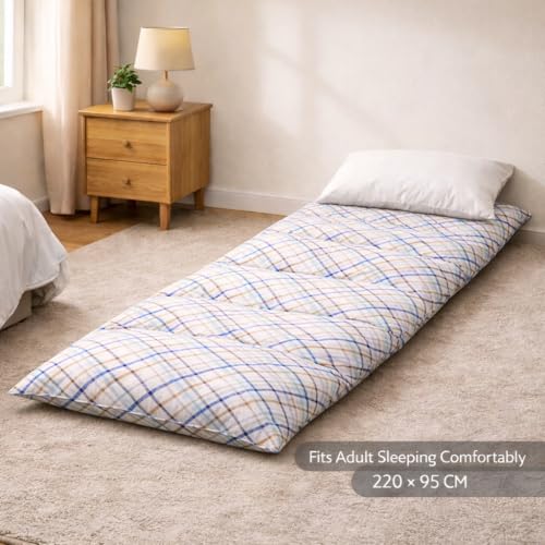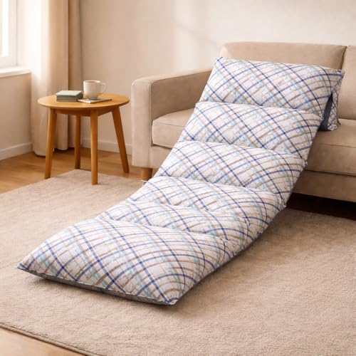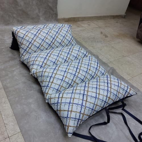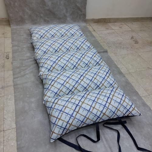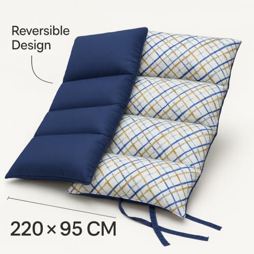 Generic - مرتبة ارضية من فيوتشر هوم - 220 × 95 سم - بطانة من الالياف المخملية - كرسي استرخاء وسرير قابل للطي - بوجهين ازرق كحلي/طباعة مربعات