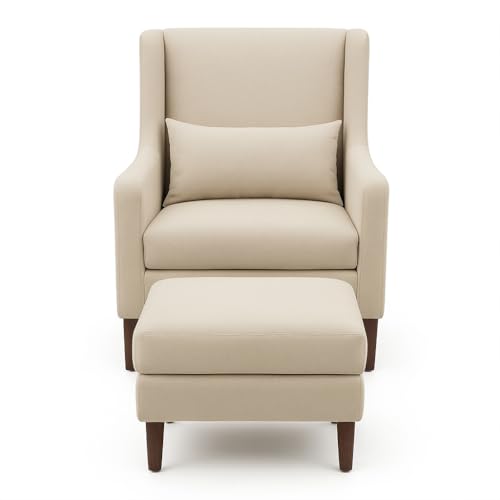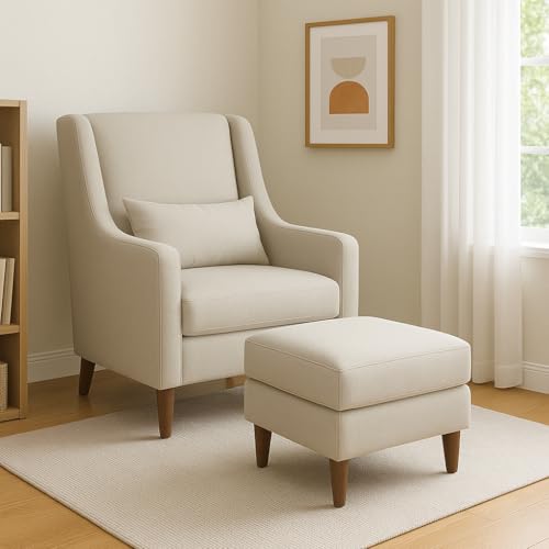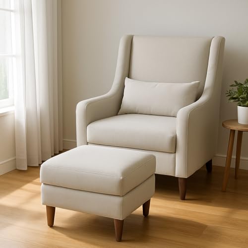 Generic - كرسي بذراعين حديث مع مسند قدم مصنوع من قماش تركي مستورد وفوم ناعم جدا وإطار من خشب الزان الصلب مع مخدة مرفقة من فيوتشر هوم، لون بيج، كرسي واحد ومسند قدم واحد