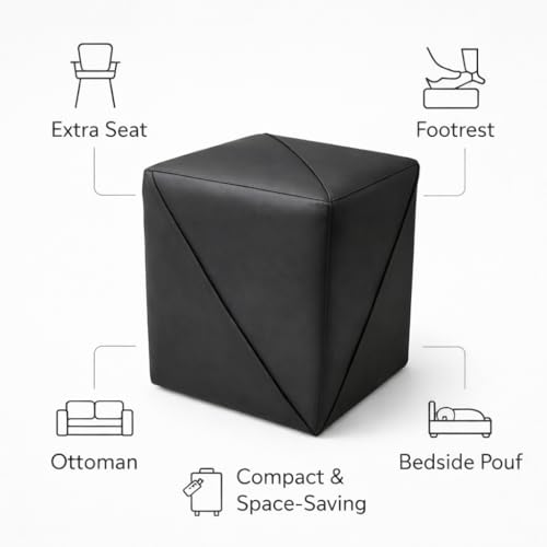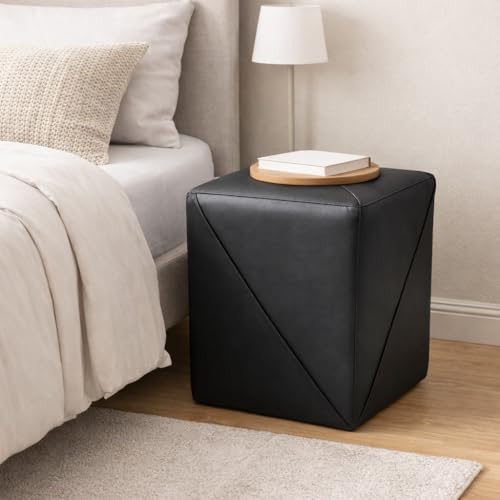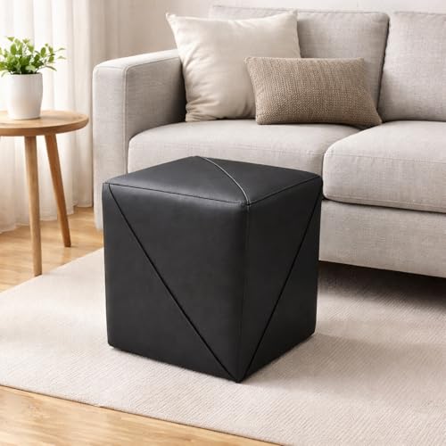 Generic - بوف حديث من الجلد الصناعي- مظهر جلد معكوس - مقعد عثماني مكعب متين لغرفة المعيشة وغرفة النوم والمكتب من فيوتشر هوم، أسود 40 × 40 × 50 سم.