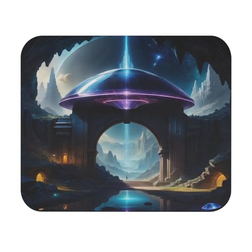 Generic - قاعدة ماوس بتصميم بوابة مستقبلية للكمبيوتر واللاب توب - عمل فني مستقبلي لعالم الكائنات الفضائية مع سطح أملس وقاعدة مطاطية غير قابلة للانزلاق