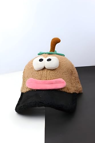 Generic - كاب بيسبول فروي، كاب ناعم من القطيفة على شكل وجه كرتوني بعيون وفم معبرين، تصميم شخصية مرحة وفريدة من نوعها للأطفال والمراهقين والبالغين للتألق