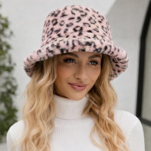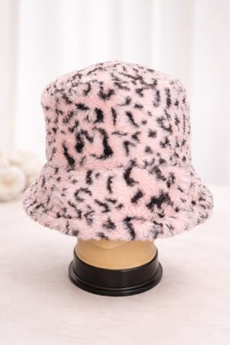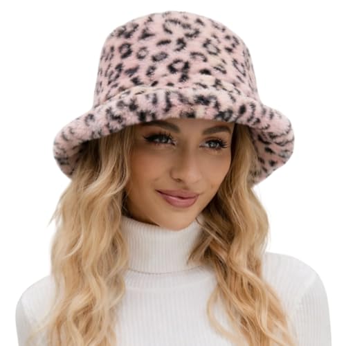 Generic - قبعة باكيت زغبية، طباعة جلد الفهد الوردي، فرو صناعي، اكسسوار عصري للشتاء