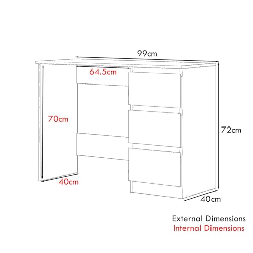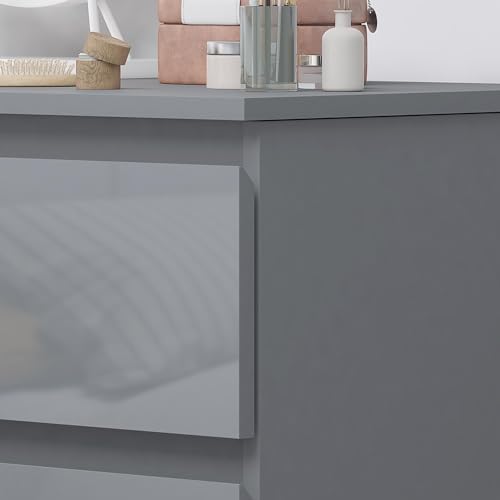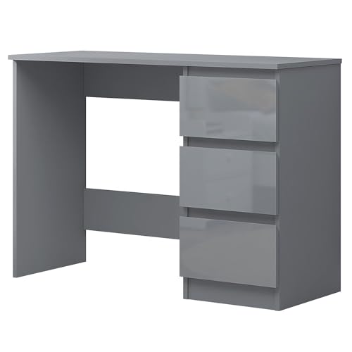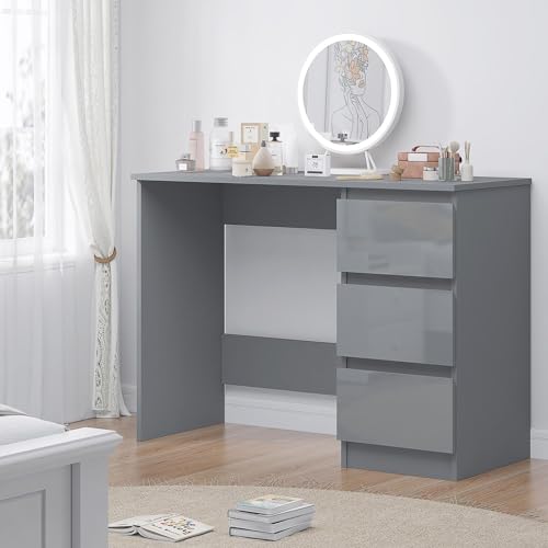 FWStyle - طاولة زينة عصرية مكونة من 3 أدراج من اف دبليو ستايل، طاولة فن المكياج للمنزل والمكتب بنمط اسكندنافي - ارتفاع 71.5 × عرض 99 × عمق 40 سم (رمادي لامع)