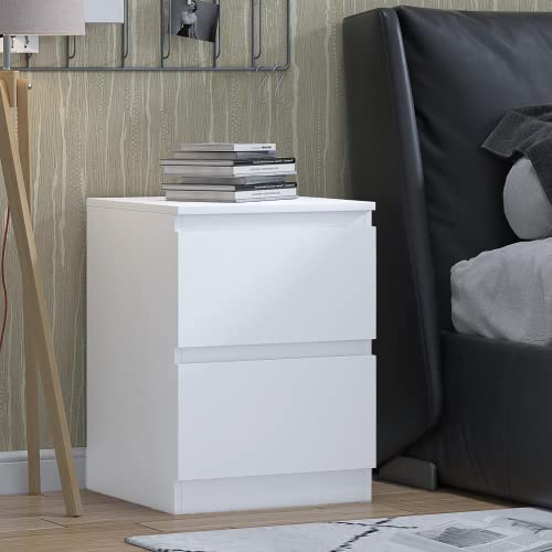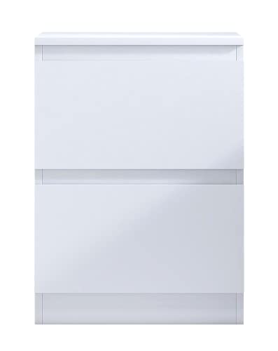 FWStyle - خزانة اثاث غرفة نوم عصرية من اف دبليو ستايل، خزانة طويلة بدرجين بجانب السرير، ابيض غير لامع
