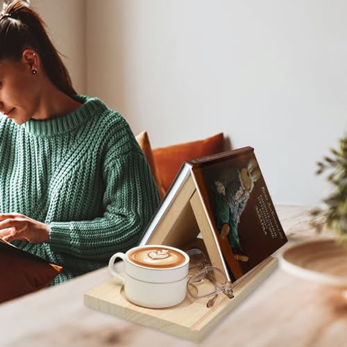 - [حامل كتب متعدد الوظائف] يأتي حامل الكتب مع حامل أكواب، لتتمتع بالقهوة والشاي ومشروباتك المفضلة أثناء القراءة. يمنحك مساحة منظمة لنظاراتك وكتبك والموبايل والقلم أو غيرها من الضروريات. مثالي لمكتبك وطاولة السرير وطاولة القهوة أو الطاولة الجانبية.