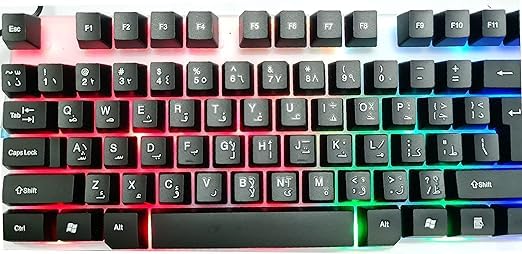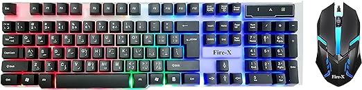 Generic - طقم كيبورد وماوس للالعاب فاير.اكس مع تاثير اضاءة RGB بـ7 الوان مختلطة مع 104 مفتاح باللغتين العربية والانجليزية- متعدد الالوان، FX-55، Usb