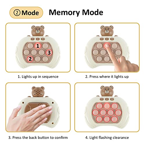 - [4 أوضاع للعب] تحتوي لعبة بوش بوب على 4 أوضاع للعب، بما في ذلك وضع الاختراق ووضع الذاكرة ووضع التسجيل ووضع اللاعبين المتعددين. يمكنك اختيار الوضع المناسب حسب الرغبة للحصول على متعة لا نهاية لها. بالإضافة إلى ذلك، فهي تتميز بمرونة ونعومة كبيرة، بدون حواف حادة، مع ملمس مريح، لذلك فهي لن تخدش أيدي الأطفال.