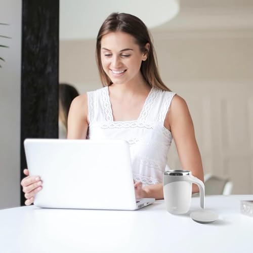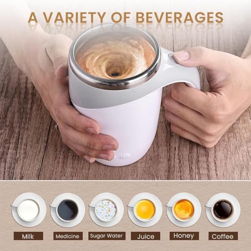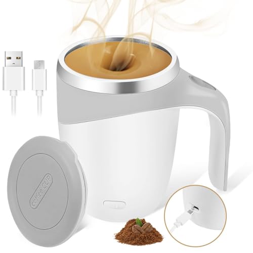 FYCAN - كوب ذاتي التحريك بمنفذ USB قابل لإعادة الشحن بسعة 380 مل من فولاذ مقاوم للصدأ 304 فيكان مج مغناطيسي تلقائي مع غطاء للقهوة والشاي والشوكولاتة الساخنة والحليب والكاكاو ومسحوق البروتين والمنزل أبيض