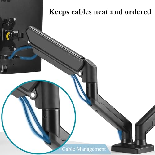 Fydeamer - ذراع شاشة فردي مناسب حتى 32 بوصة قابل للتدوير وقابل للتعديل في الارتفاع مع نابض زنبركي لحامل الكمبيوتر لدعم وزن من 2 إلى 9 كجم مع مشبك C من فيديمر، لون أسود، (ذراع مزدوج)